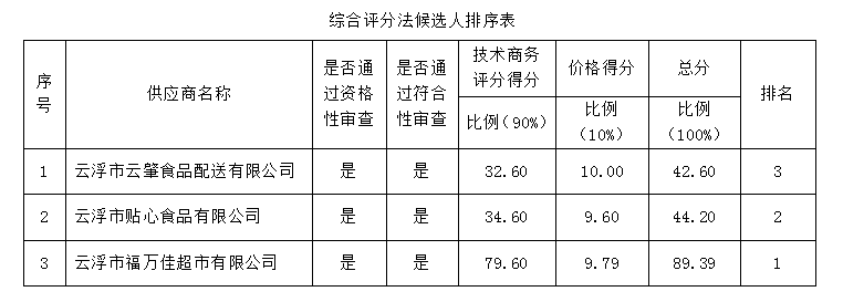 1.成交供應(yīng)商名稱:云浮市福萬(wàn)佳超市有限公司
